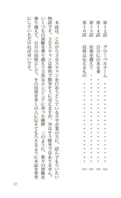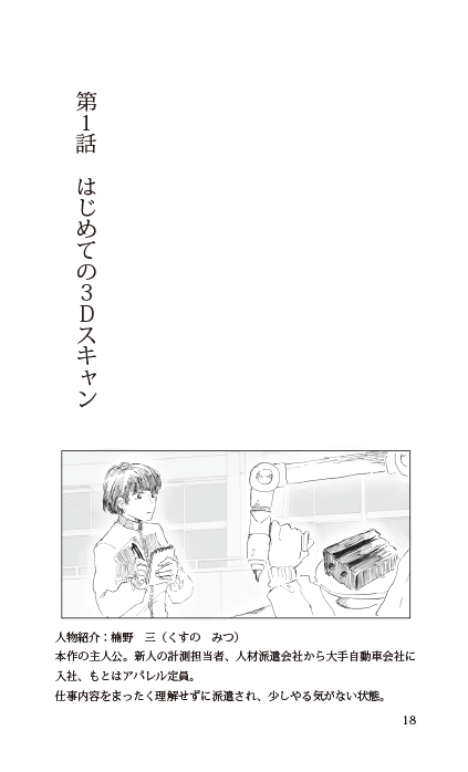 現場で奮闘する新人エンジニアの成長と挑戦を描きながら、3Dスキャナの実践的な活用法やノウハウをわかりやすく紹介。