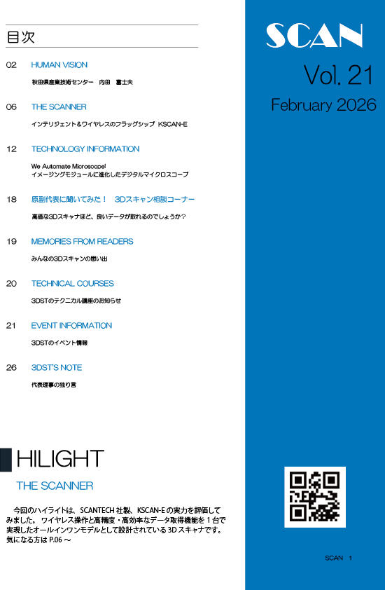 3Dスキャン情報誌「SCAN」は、2ヶ月に1度の発刊です(偶数月15日頃)。
